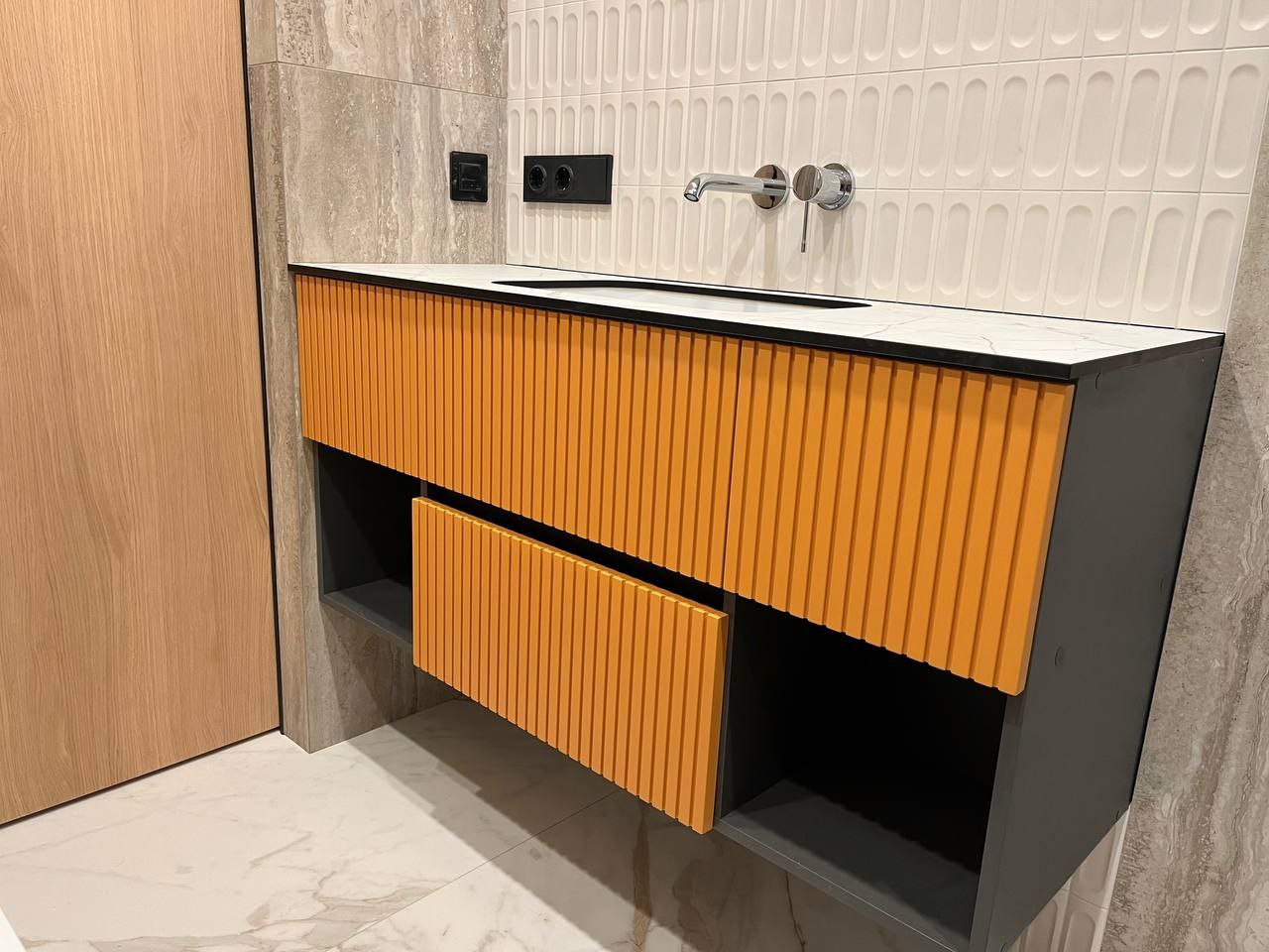 - Не рекомендуется снимать защитную пленку с фасадов до завершения установки мебели.
