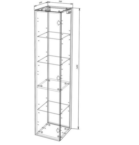 1 дверный, петли с доводчиком. Внутри полка из стекла