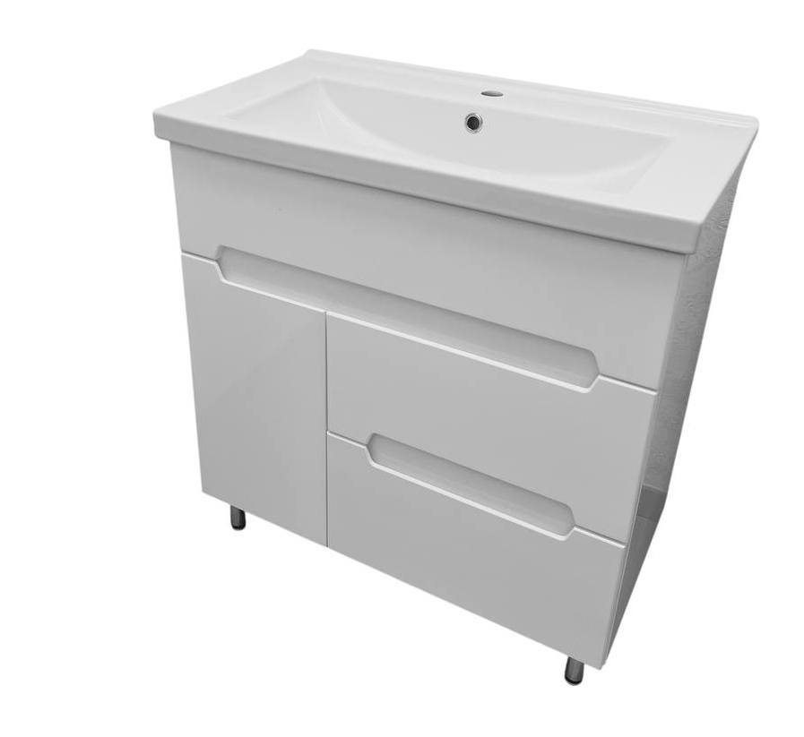 | Конструкция | В собранном виде 2 выдвижных ящика с доводчиком, предусмотрен вырез под сифон 1 отделение с 1-й распашной дверью (петли с доводчиком), внутри 1 полка — ЛДСП |
